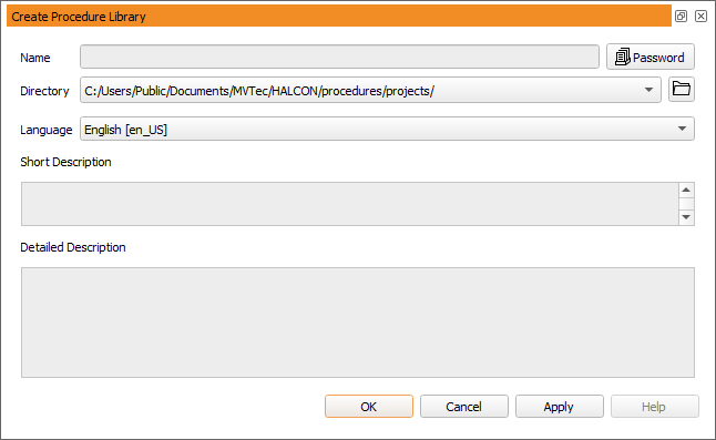 Click the Password button to protect the entire library with a password (see also section “Protecting a Procedure”).