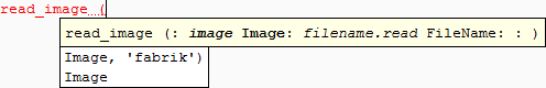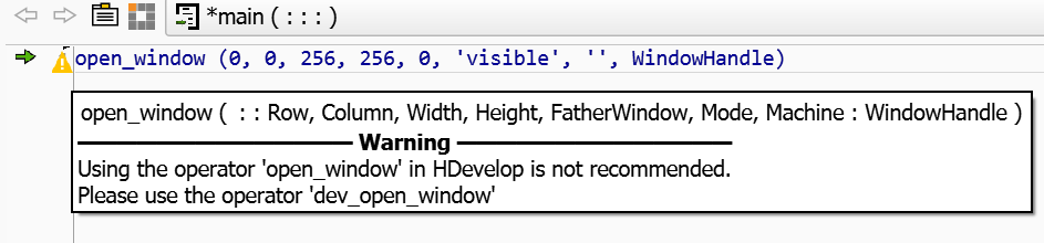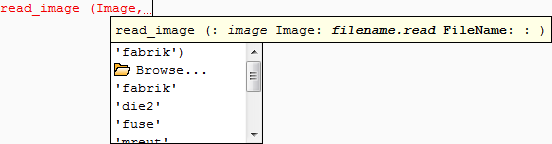 When entering expressions, the advanced autocompletion also suggests operations supported by the HDevelop language (see chapter “HDevelop Language”).