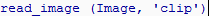 In this example, we want to load the image clip, so none of the suggestions fits. Just type the file name in single quotes ('clip') and press Tab to complete the parameter list. The closing parenthesis is inserted automatically: