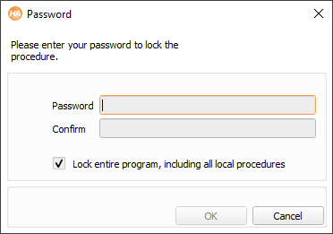 Figure 6.60: Entering a password to protect a procedure. The option “Lock entire...” is only available for the main() procedure.