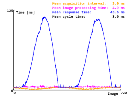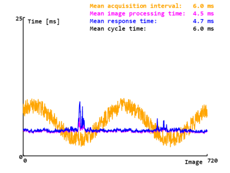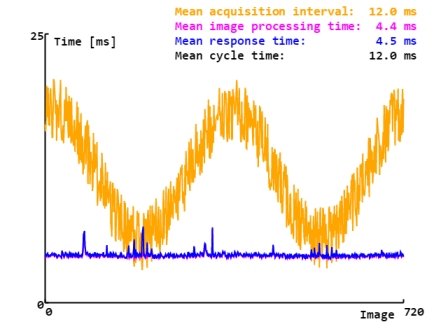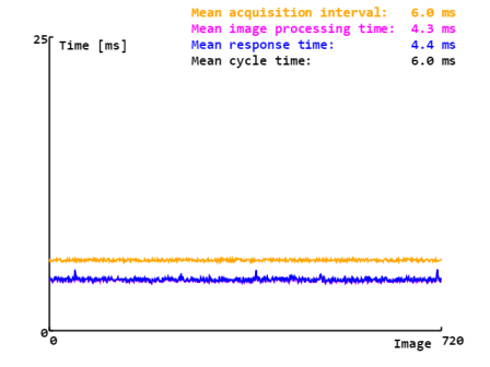 现在,我们可以评估结果了。在示例中,我们只需计算响应时间、处理时间和平均采集间隔,并将数据可视化。在实际应用中,这些结果可用于控制缺陷部件的剔除。