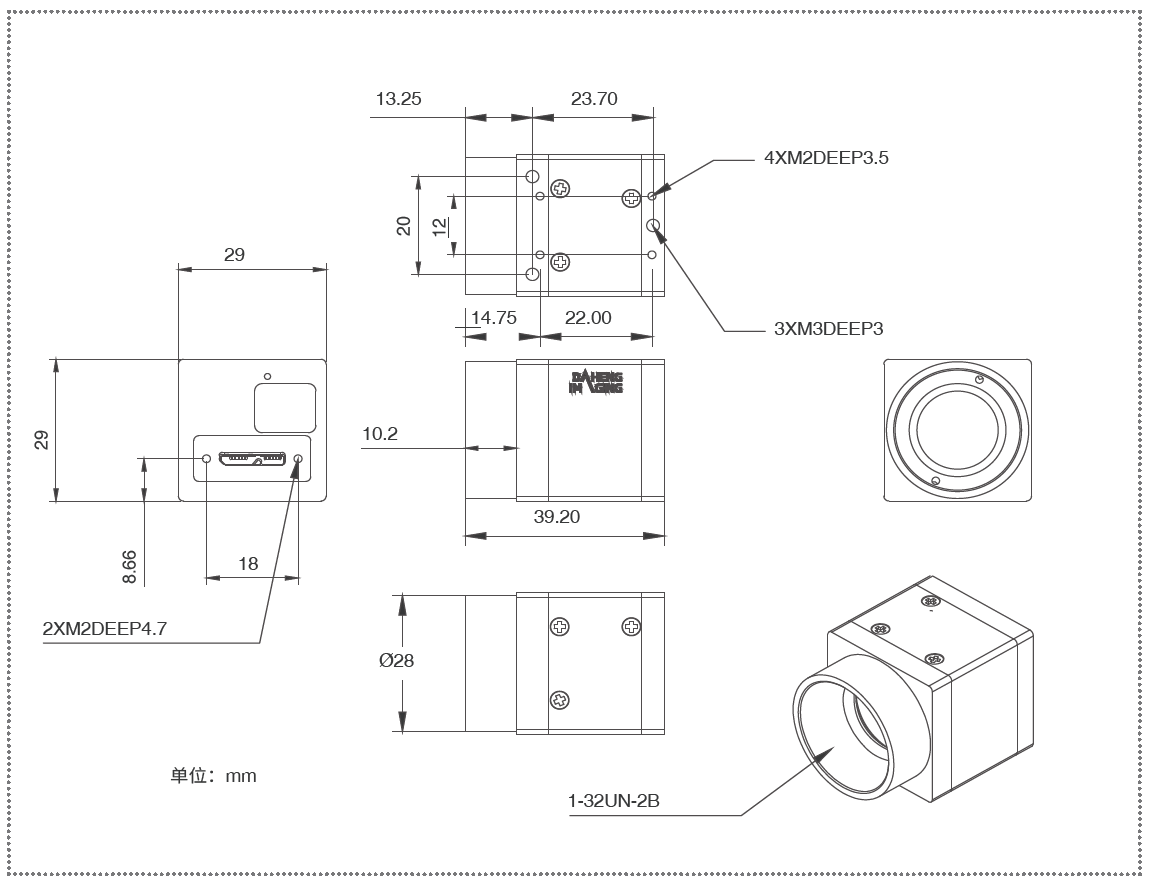 机械尺寸 | 29(W) ×29(H) × 29(L) mm(不含镜头接口和连接件) | |