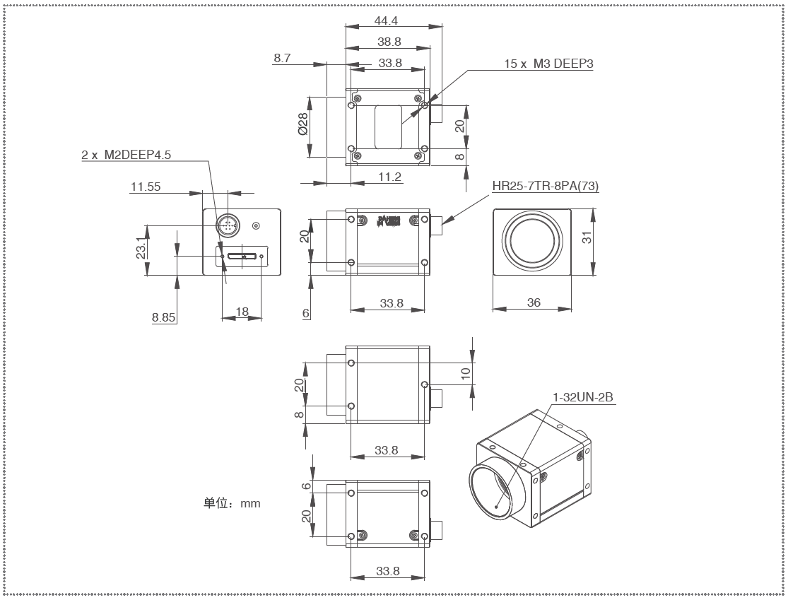 机械尺寸 | 36(W) × 31(H) × 38.8(L) mm(不含镜头接口和连接件) |