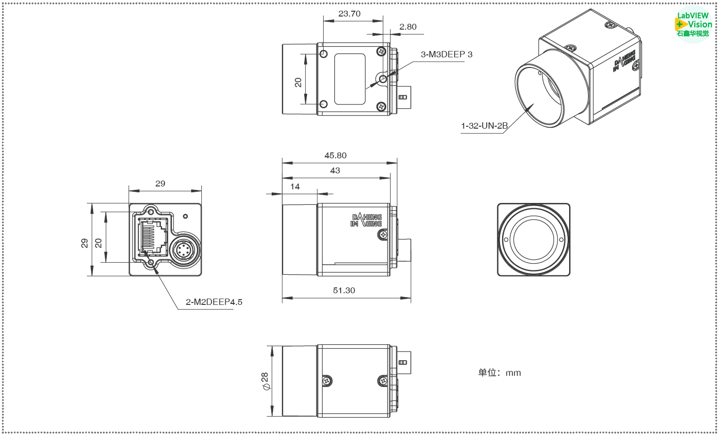 机械尺寸 | 29(W) × 29(H) × 29(L) mm(不含镜头接口和连接件) |