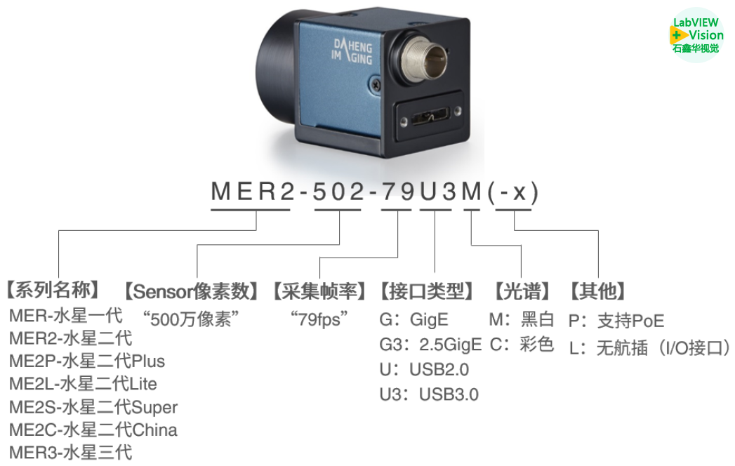 水星二代USB3.0 接口数字相机的详细信息在下文功能/性能列表给出。每一个相机型号由其Sensor最大分辨率、最大分辨率下最大帧率,以及Sensor的彩色/黑白类型确定。