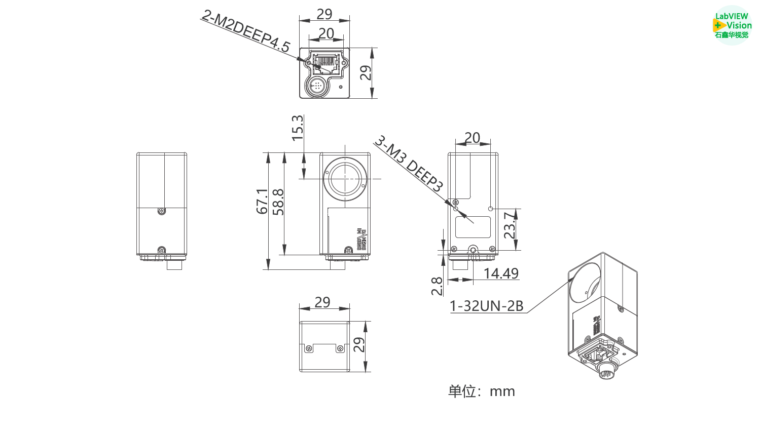 机械尺寸 | 29(W) × 29(H) × 58.8(L) mm(含 C接口,不含 I/O接口) | |