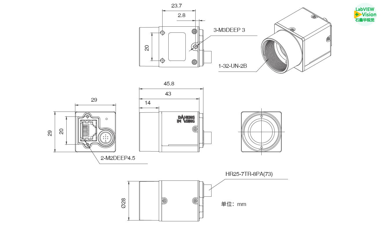 机械尺寸 | 29(W) × 29(H) × 29(L) mm(不含镜头接口和连接件) | |