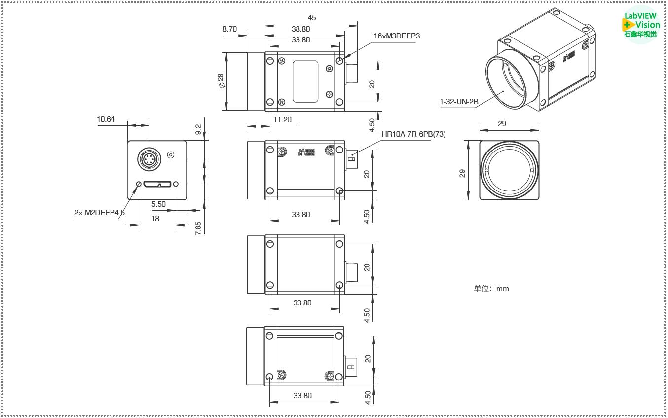 机械尺寸 | 29(W) × 29(H) × 38.8(L) mm(不含镜头接口和连接件) 85.2(W) × 29(H) × 38.8(L) mm(不含镜头接口和连接件,带散热翅) |