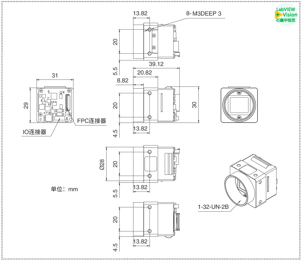 机械尺寸 | 31(W) × 29(H) × 30.9(L) mm(不含镜头接口长度) | |