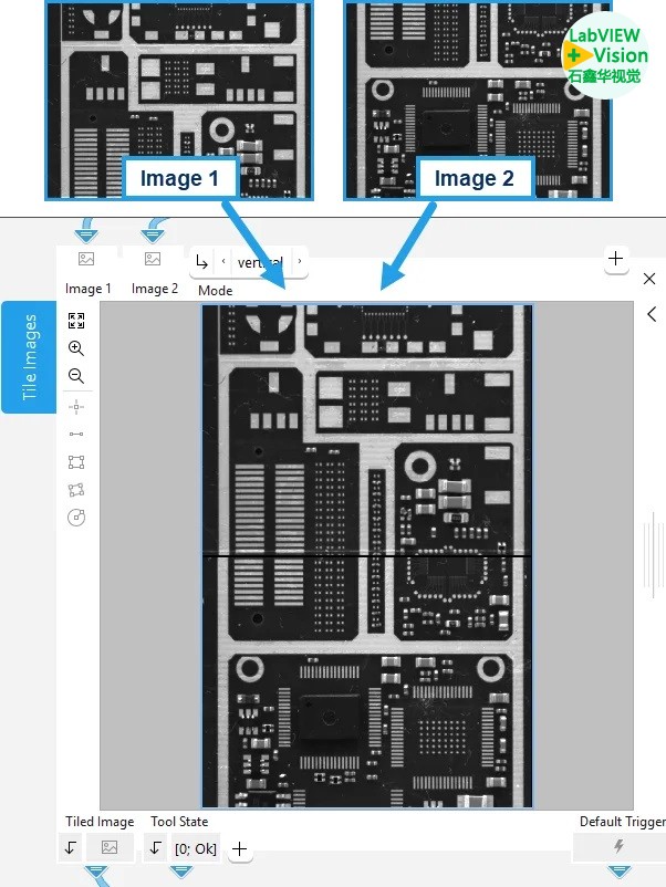 MERLIC 26.03 引入了新的概念工具 “Tile Images”。该工具可将两张具有相同通道数的图像拼接为一张合成图像,支持水平或垂直拼接。通过多次应用该工具,用户可以逐步创建更大的图像组合。这有助于更清晰地组织图像数据,并支持后续处理流程的高效执行。结合图像采集序列功能,来自线扫相机或面阵相机采集的图像可以拼接成一幅连续的整体图像。作为概念工具,“Tile Images”目前仍处于早期开发阶段。MVTec 欢迎用户测试该功能,并提供反馈,以共同推动未来 MERLIC 版本的发展。