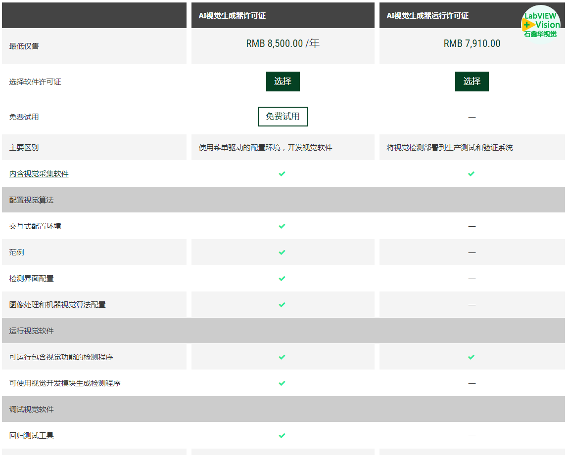 VBAI的正版软件许可,ni.com官网可订购的有两种方式,一种是购买开发版许可证序列号,现在是按年订阅的: