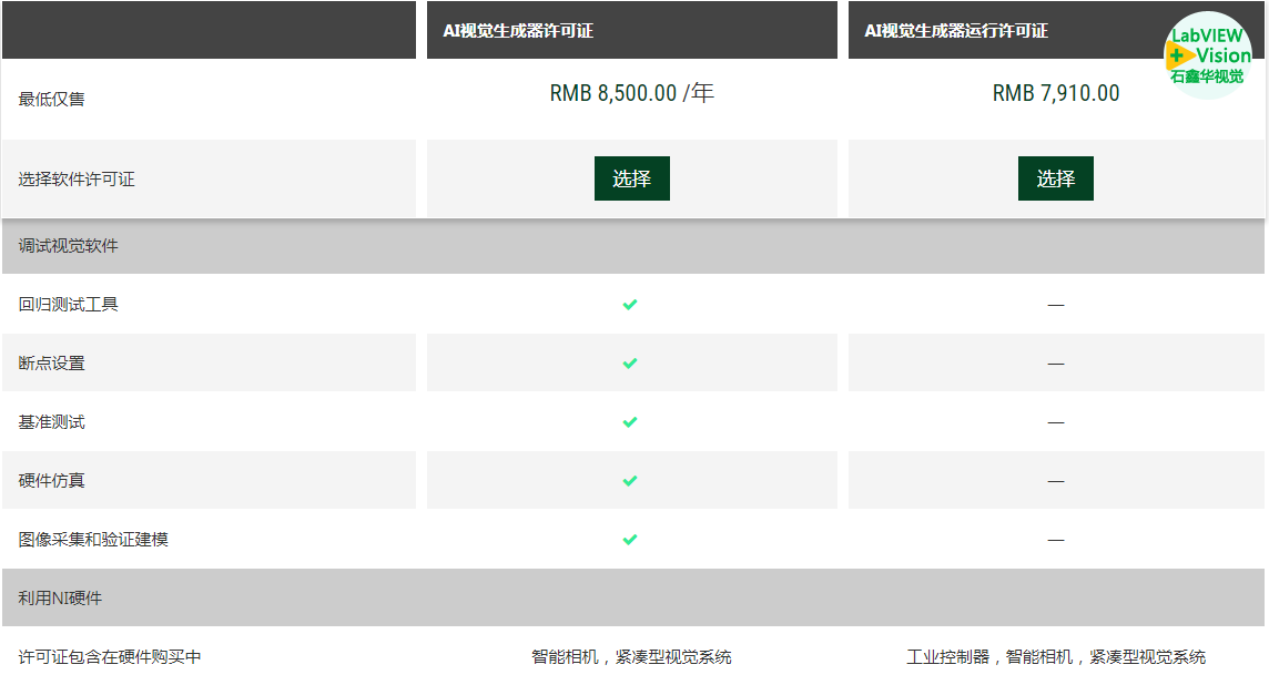 VBAI许可证包含了VAS的IMAQdx许可证