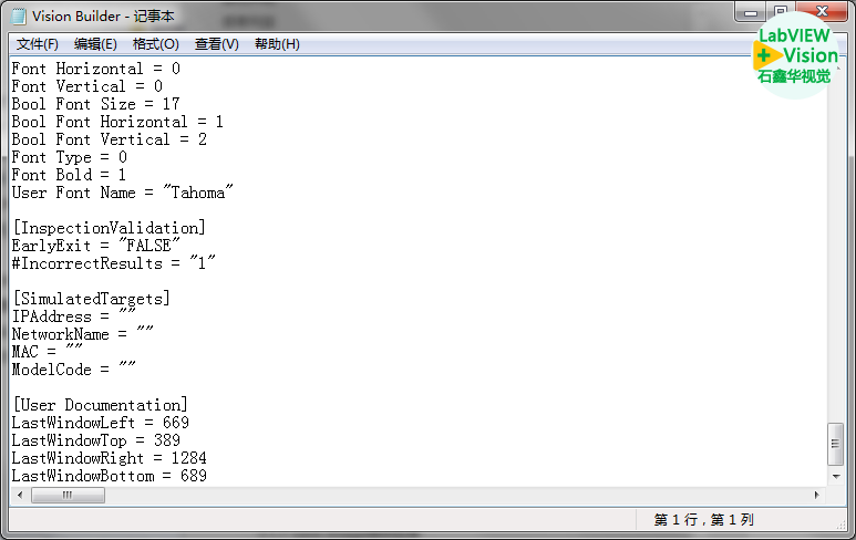 这里有一个比较老火的问题,添加了仿真设备后,这个仿真设备无法删除。查找了VBAI相关的配置文件里,也没有该仿真设备的配置选项。最后搜索了整个C盘NI软件的安装目录,发现在C:ProgramDataNational InstrumentsVision Builder AI0目录下,有一个Vision Builder.ini配置文件,这个配置文件包含了添加的仿真设备、最近配置检测、运行检测列表等: