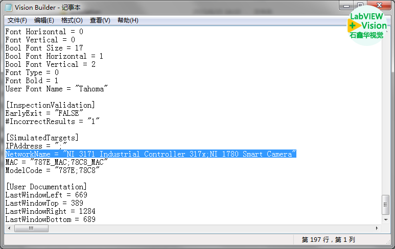Vision Builder.ini配置文件中包含了添加的仿真设备