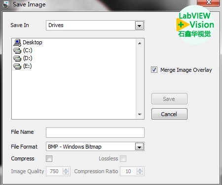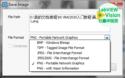 在保存图像时,需要确认文件夹目录以及图像类型。这里可用的图像类型可以使用bmp、tif、jpg、jp2、png等类型。VBAI2020版的保存图像的功能,好像没有以前的版本功能好。以前的版本,其实是可以选择文件夹,然后每次只要修改文件名就可以了。也可以合并图像覆盖再保存: