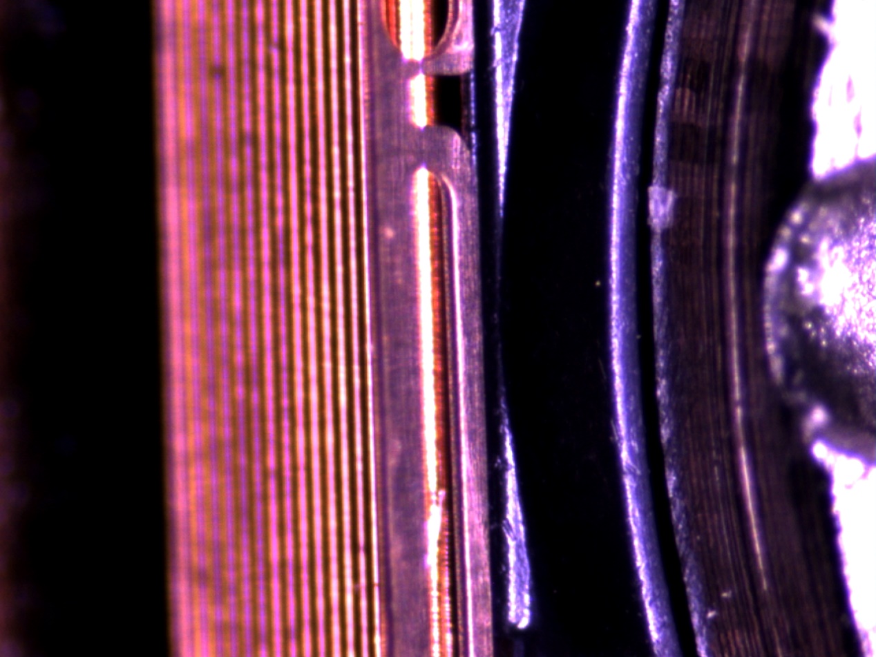 产品是一个圆柱型的产品,所以通常可以考虑使用环形光源。其中又有很多的直边,则可以考虑条形光源。所以,要表现直边或弧边特征,结合产品本身来看,主要考虑条形光源和环形光源。当然,正面检测时,还可以考虑正向的圆顶光源和同轴光源之类的。